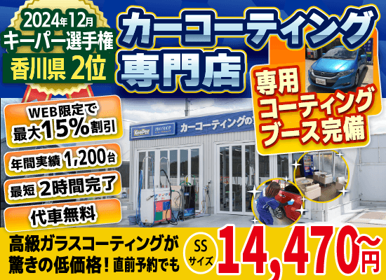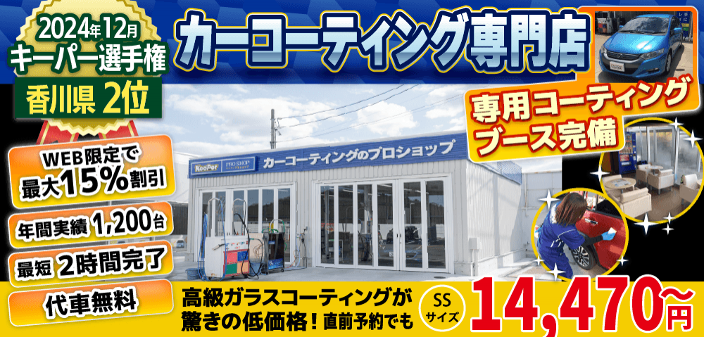 私達キーパープロショップは、高松市・坂出市・綾歌郡綾川町・さぬき市エリアのカーコーティング専門店として、日本ダントツのカーコーティングブランド、キーパープロショップとして認定を受けております!